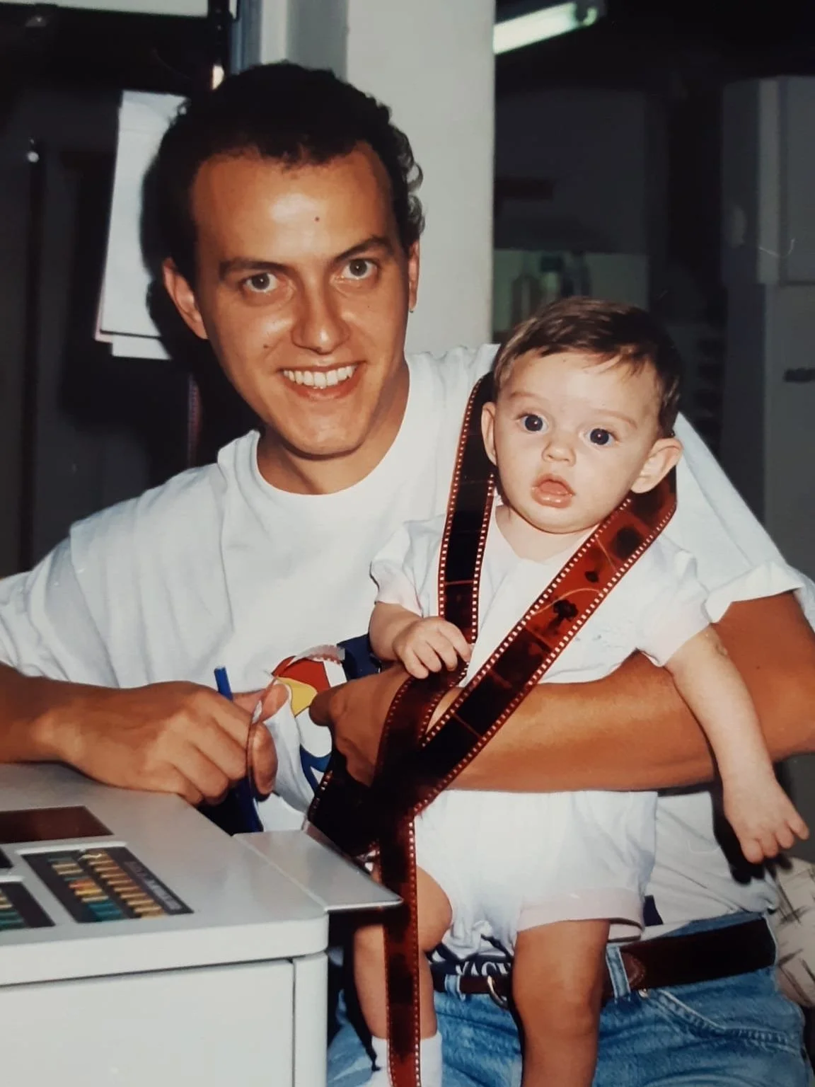 El hombre que me sujeta, es mi padre, fotógrafo con tintes de pianista.